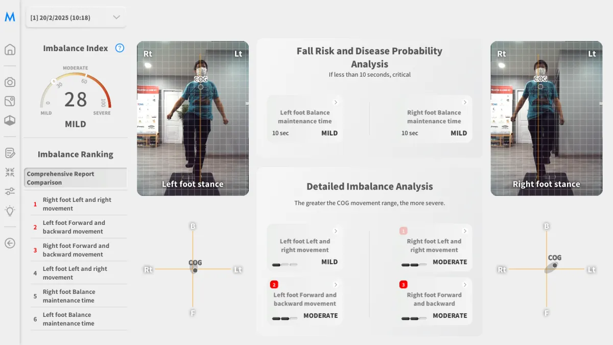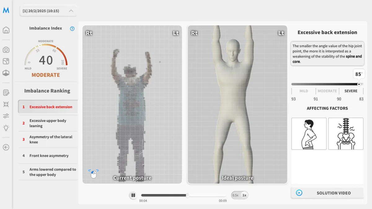 High-precision depth-sensing camera captures full-body scans in 3D, detecting even subtle posture deviations.